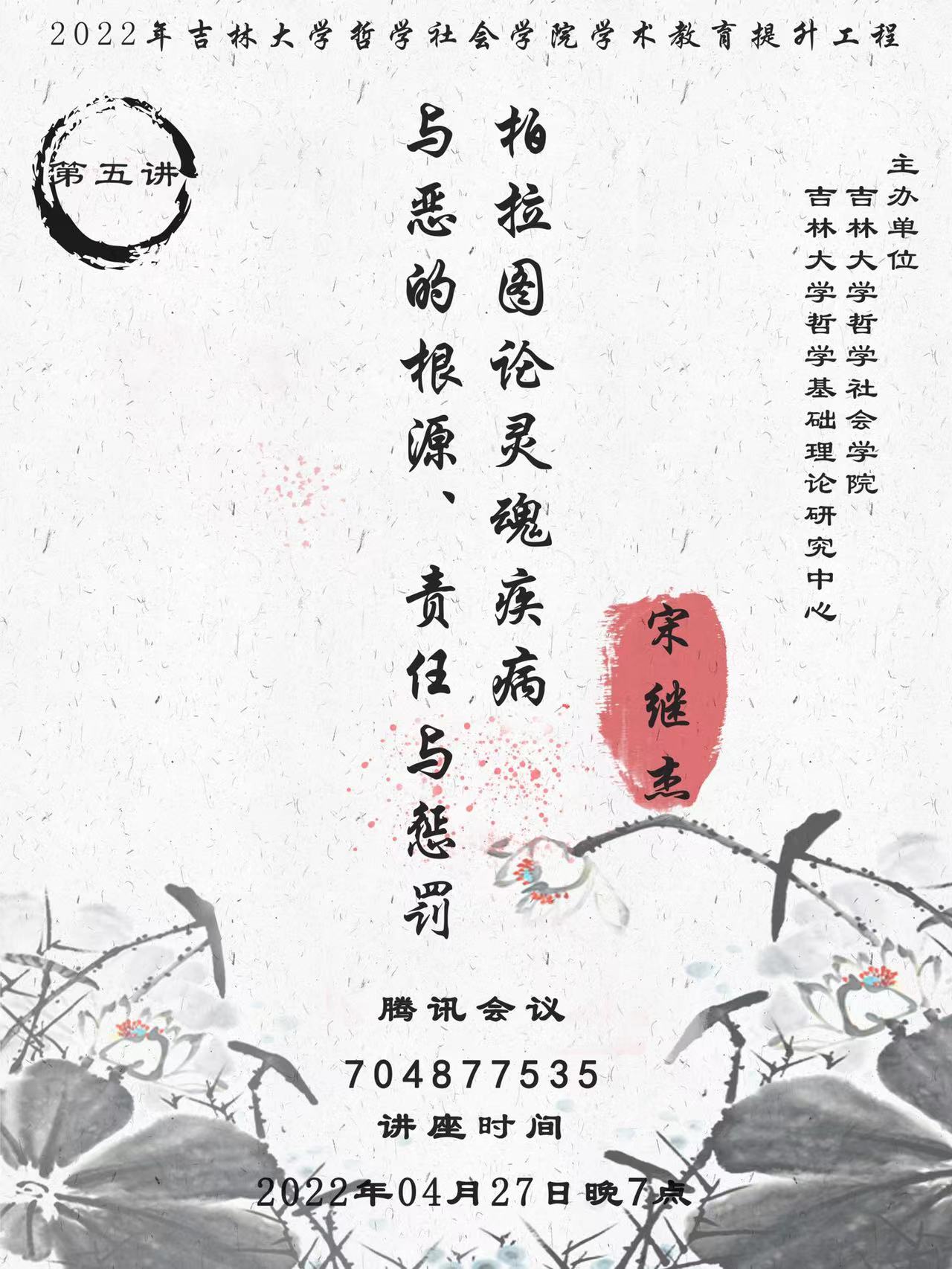 【太阳成集团tyc122cc学术教育提升工程(第五讲)】宋继杰:柏拉图论灵魂疾病与恶的根源、责任与惩罚