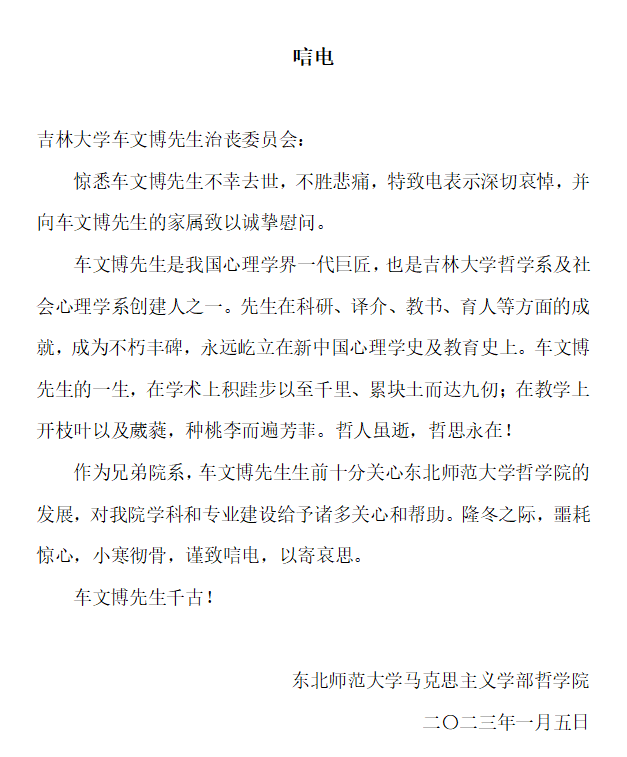 东北师范大学马克思主义学部哲公司唁电