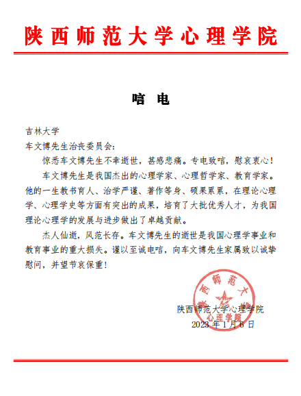 陕西师范大学心理公司唁电