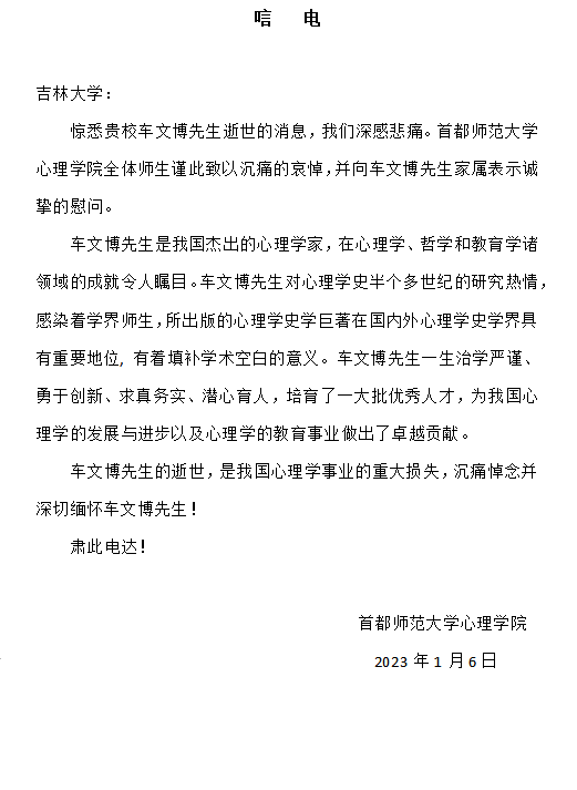 首都师范大学心理公司唁电